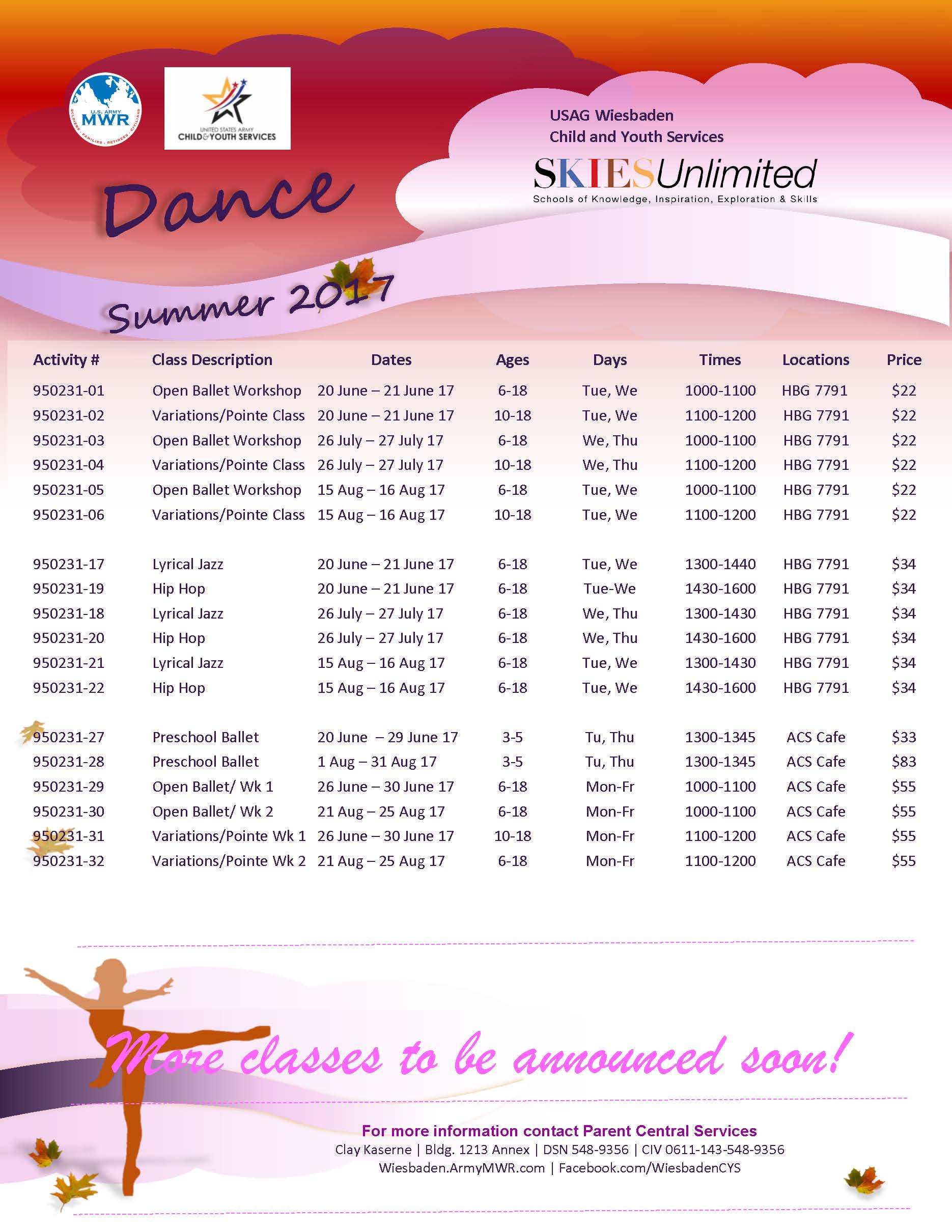 Register Now!Wiesbaden Child and Youth Services hosts Summer Dance Camps on the following dates: