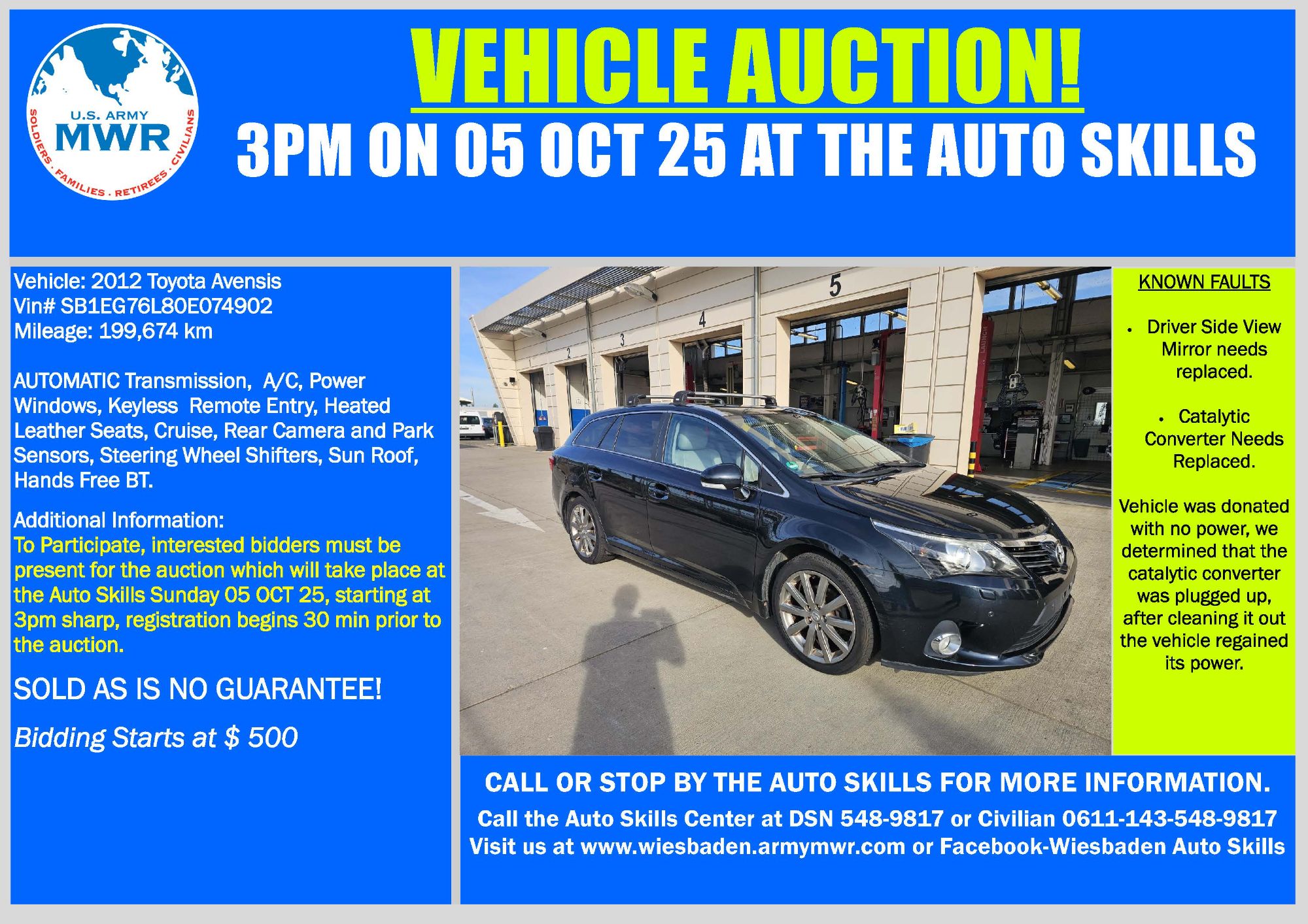 The auction is available to U.S. ID cardholders only, and all vehicles must be registered with USAREUR registration.